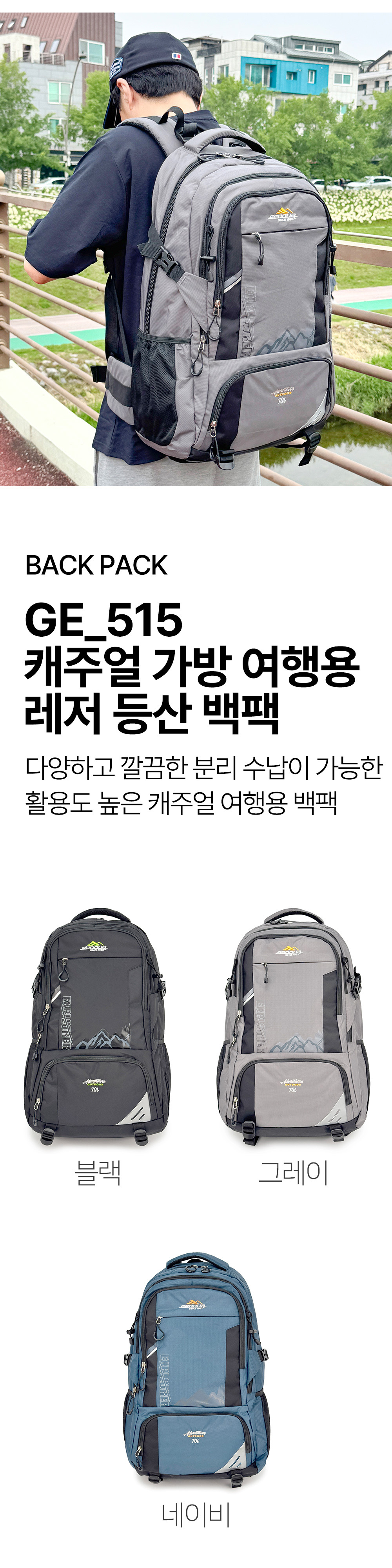 제조사표기상 70L크기의 대형가방입니다