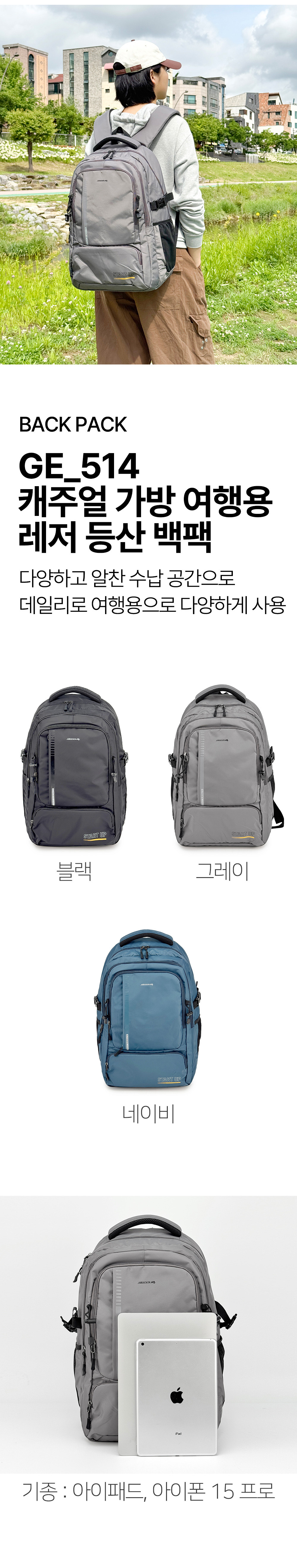 여행용 캐주얼백팩 아웃도어 등산 백팩 (GE514)