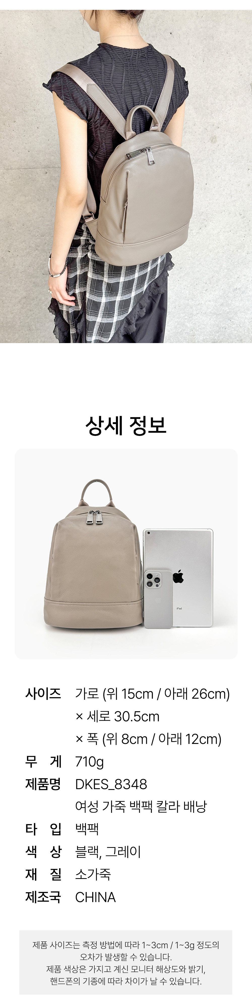 여성 가죽 백팩 칼라 배낭 (dk8348)