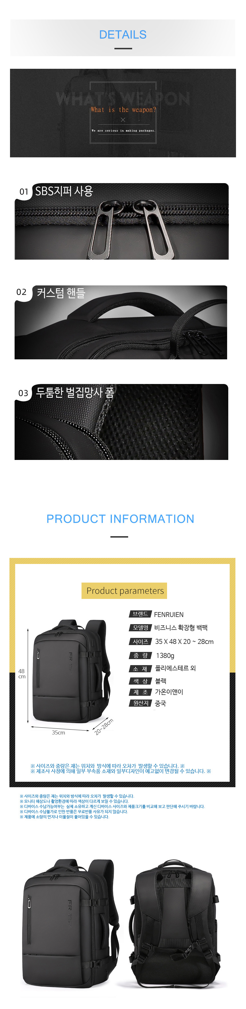 17인치 노트북백팩 확장형 여행용백팩 출장가방 (fr24688)
