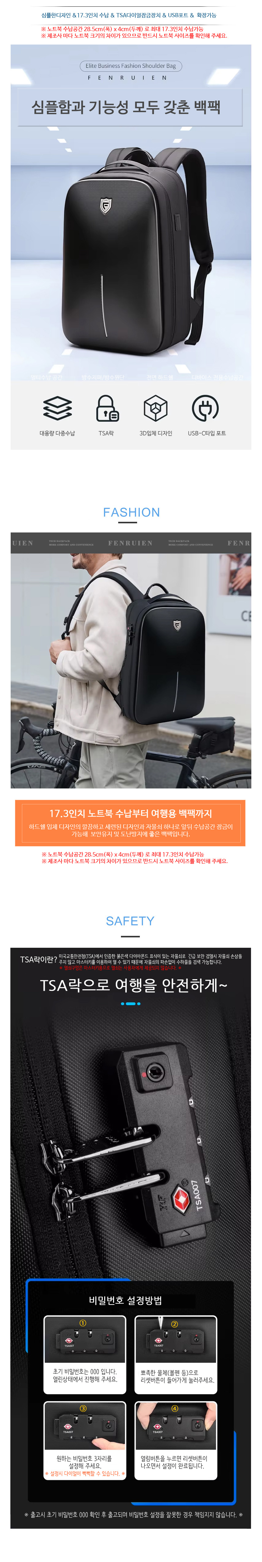 하드쉘 TSA 17인치 노트북백팩 회사원 직장인 비지니스백팩 (FR25208