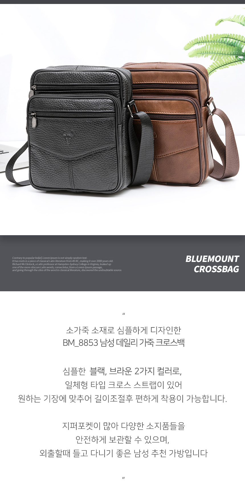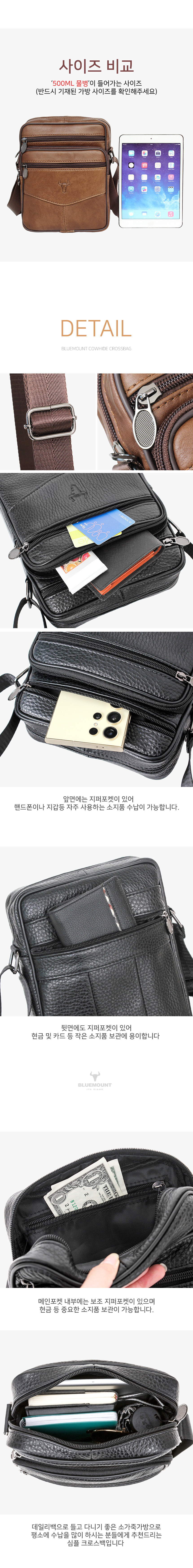 > 남성 데일리 가죽 크로스백 소가죽 크로스 메신저백 아이패드 수납가방 (bm8853)